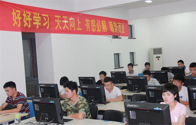 7月4日晚,歙縣青創(chuàng)職業(yè)學(xué)校電教室內(nèi)燈光明亮,參加全縣退役士兵職業(yè)技能培訓(xùn)班的小伙子們精神抖擻、興致盎然,“好好學(xué)習(xí) 天天向上 有惑必解 順勢而業(yè)”的大紅標(biāo)語也格外醒目。學(xué)員們在白天理論教學(xué)的基礎(chǔ)上,利用晚上進(jìn)行上機(jī)實(shí)際操作,鞏固提升所學(xué)知識,相得益彰???,他們學(xué)得多認(rèn)真??!