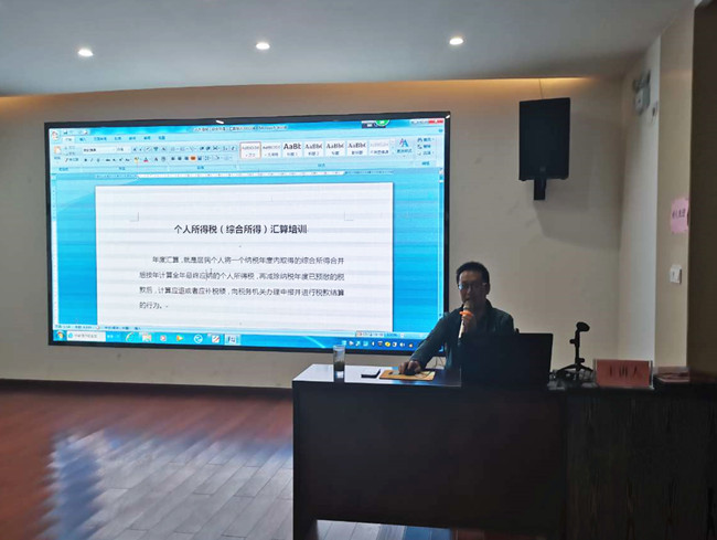 主講汪銘是中心副主任,集注冊會計師、注冊稅務師、管理會計師與一身,具有豐富的財稅工作實踐經(jīng)驗。他時刻關注政府部門新近頒布的政策法規(guī),并認真學習和鉆研。當日,汪銘副主任從個人所得稅征稅對象、稅率、優(yōu)惠政策、應納稅所得額、匯算清繳、法律責任等六個方面進行深入闡述,并結合國家稅務總局《關于辦理2019年度個人所得稅綜合所得匯算清繳事項的公告》(國家稅務總局公告2019年第44號)、財政部 稅務總局《關于個人所得稅綜合所得匯算清繳涉及有關政策問題的公告》(財政部 稅務總局公告2019年第94號)進行解釋和說明,使全體參訓人員對2019年度個人所得稅匯算有了更全面的認識,有助于更好地為中小企業(yè)和納稅人做好相關服務。