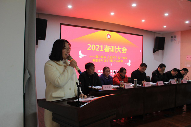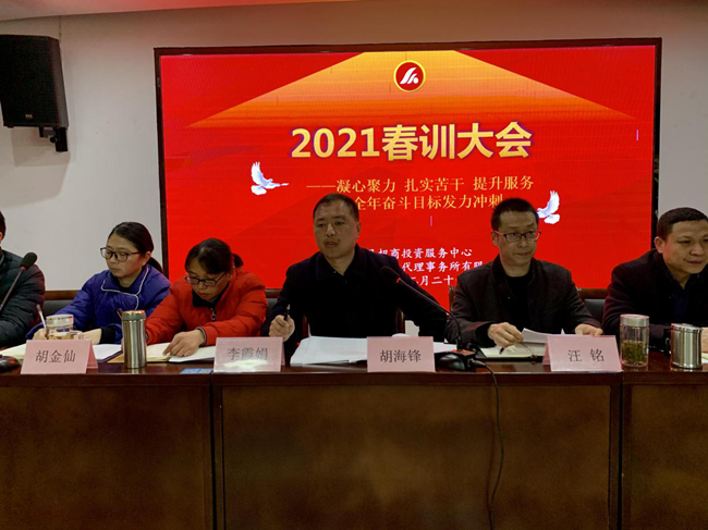 為更好地總結(jié)回顧2020年工作成效,謀劃和布局2021年各項(xiàng)工作,明確目標(biāo),細(xì)化措施,2月26日,招商中心、金信財(cái)稅2021春訓(xùn)大會(huì)在中心一樓眾創(chuàng)空間如期舉行。公司全體員工60人參加會(huì)議,中心主任胡海鋒親自主持會(huì)議。