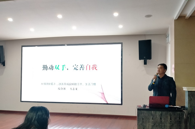 2021年4月17日,由綜合部經(jīng)理方志義主講的“企業(yè)日常管理”專(zhuān)題PPT分享在一樓眾創(chuàng)空間舉行,中心財(cái)稅服務(wù)人員50余人參與此次分享。