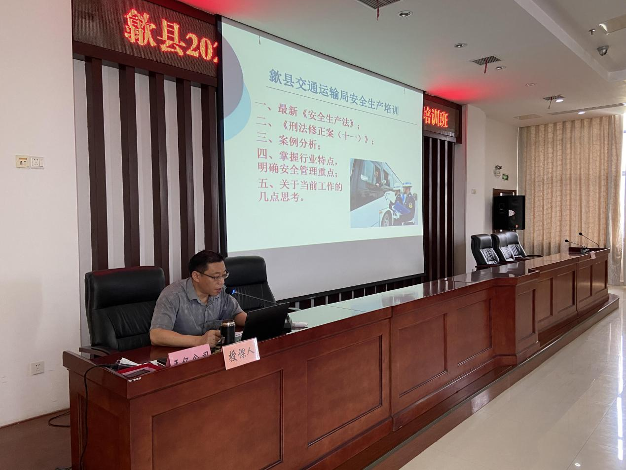 2021年6月17日,歙縣交通運(yùn)輸局舉辦安全生產(chǎn)月專題培訓(xùn),道路、水上運(yùn)輸,交通在建工程,駕培維修等的80余家單位負(fù)責(zé)人和安全生產(chǎn)管理人員,及局機(jī)關(guān)各科室、各監(jiān)管單位負(fù)責(zé)人百余人參加培訓(xùn),局黨組成員、副局長(zhǎng)馮興根作重要開班講話。