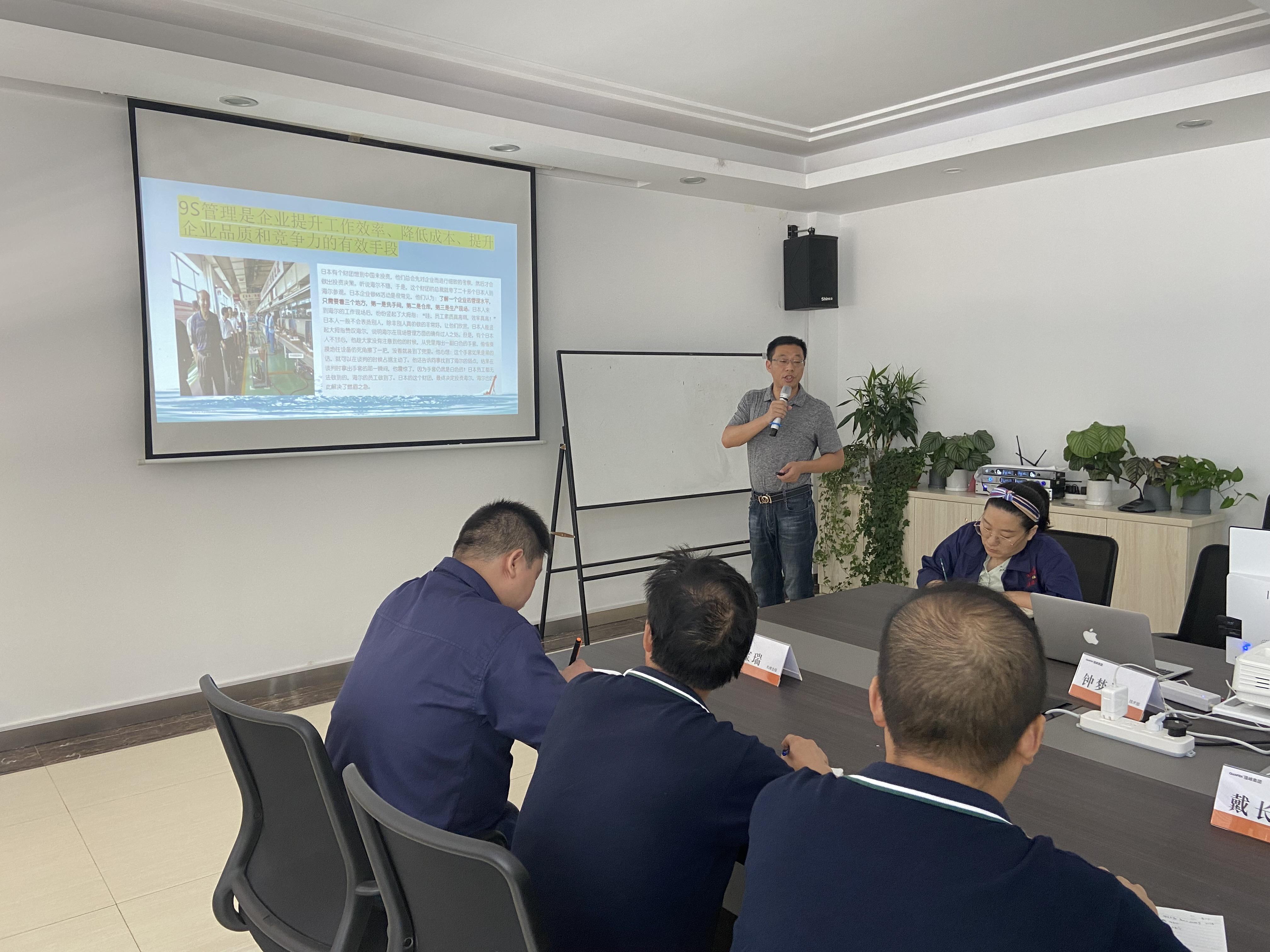 (上圖為正億公司注安師吳智勇對(duì)強(qiáng)峰鋁業(yè)組長(zhǎng)以上員工進(jìn)行9S管理基礎(chǔ)培訓(xùn)。)