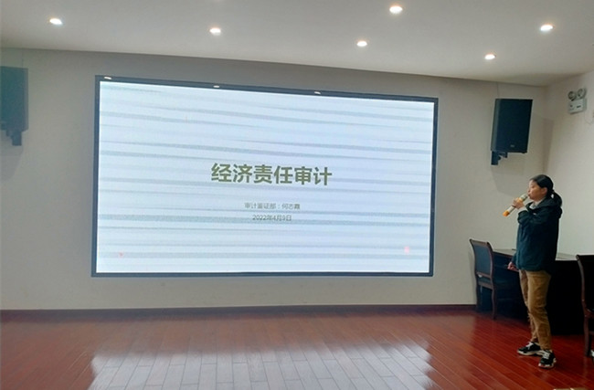 何志霞副經(jīng)理從事會計工作多年,有著豐富的工作經(jīng)驗,特別是在經(jīng)濟責任審計方面,業(yè)務(wù)突出,經(jīng)常受到相關(guān)政府領(lǐng)導(dǎo)的贊賞與肯定。此次分享她主要圍繞“經(jīng)濟責任審計”工作,從經(jīng)濟責任審計的審計對象、審計內(nèi)容、現(xiàn)場管理要點、現(xiàn)場相關(guān)附件、以及審計報告創(chuàng)新對比等內(nèi)容進行詳細講解。經(jīng)過何志霞副經(jīng)理的用心介紹,使得參與人員對“經(jīng)濟責任審計”有了更全面、深入的了解,有助于提升員工的綜合業(yè)務(wù)能力,更好的為企業(yè)提供服務(wù)。