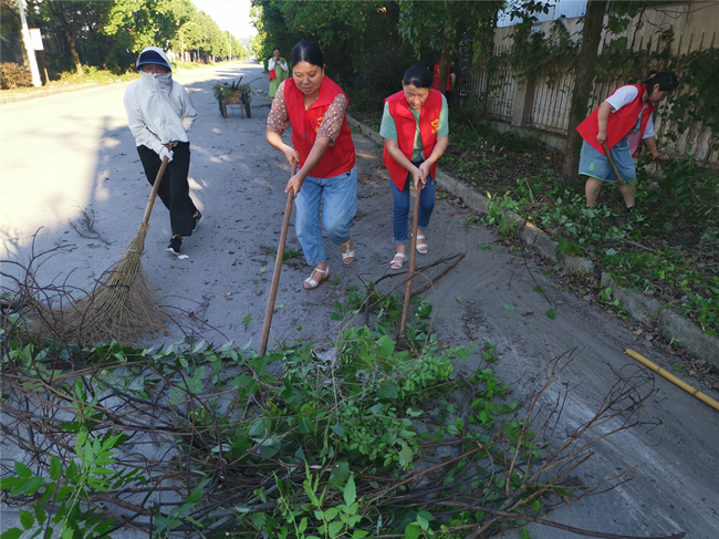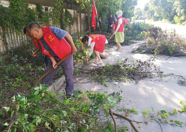 夏日炎炎,地面溫度接近40℃,但全體黨員熱情高漲,支部書(shū)記胡海鋒一馬當(dāng)先、率先垂范,對(duì)兩側(cè)的雜亂植物進(jìn)行清理;其他黨員也毫不示弱,利用各種工具參與其中,汗如雨下,順著臉頰酣暢流淌,浸濕前胸后背,但大家都毫不在意。經(jīng)過(guò)2個(gè)小時(shí)的緊張奮戰(zhàn),使園區(qū)這一路段由“雜草叢生”變成“眼前一亮”,大道更加寬敞、整潔。