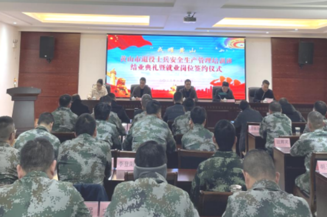 黃山市退役士兵安全生產(chǎn)管理培訓(xùn)是對退役士兵適應(yīng)性培訓(xùn)模式的一種創(chuàng)新和償試。本期培訓(xùn)于2022年11月19日在我校開班。通過線上線下相結(jié)合的方式,共吸收全市28名退役士兵學(xué)員參加,是我市首屆退役士兵異地技能培訓(xùn)班,也是結(jié)合企業(yè)需求、積極推薦優(yōu)秀學(xué)員就業(yè),精心籌劃的專項(xiàng)技能培訓(xùn)班,有效實(shí)現(xiàn)了培訓(xùn)與就業(yè)的結(jié)合,真正將“訂單式”“定向式”培訓(xùn)和“一改兩為”的精神落到了實(shí)處。