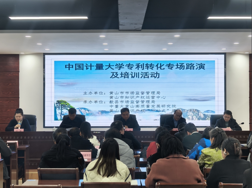11月29日,中國計量大學專利轉(zhuǎn)化專場路演及培訓活動在黃山市知識產(chǎn)權(quán)“一站式”服務工作站(安徽香寧眾創(chuàng)科技服務有限公司)舉辦。黃山市市場監(jiān)督管理局(知識產(chǎn)權(quán)局)黨組成員、副局長黃劍,黃山市市場監(jiān)管局黨組成員、副局長張妮,歙縣市場監(jiān)督管理局黨組書記、局長江志偉以及全市知識產(chǎn)權(quán)行政管理人員和相關(guān)企業(yè)參加活動。