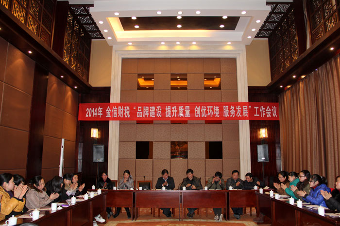 2014年是金信財稅的“品牌建設(shè)年”,為推進、實施這項長期、艱巨的工作目標,公司于2月15日在歙縣飯店一樓舉行了會議,會議除了公司的33名員工外,還特別邀請了經(jīng)信委的洪亮、汪錦峰副主任參加了會議。